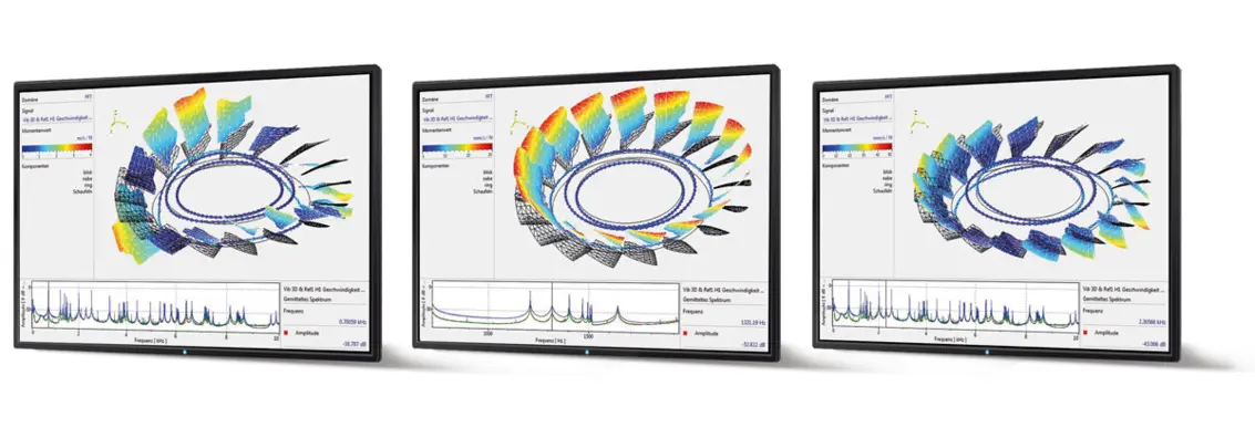 目前,我们仅分析了叶盘的第一模态族的振型,但由于已获取高达10kHz的数据,我们完全可以相同精度研究更高模态族的振型。