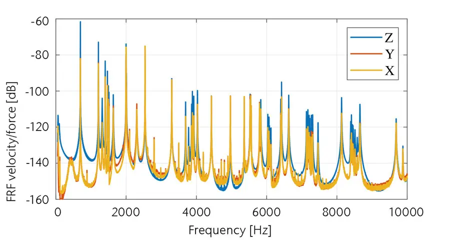 此外,3D扫描式激光多普勒测振仪还能轻松准确地输出整个带宽范围内的完整三维振型,其完整的数据集可以方便地用于有限元模态相关性分析。