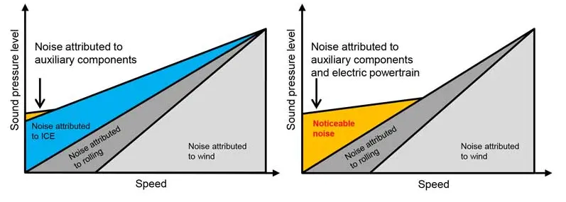 驾驶舒适性是我们购车时重点考量因素之一。声音特性,尤其是电动传动系统的车辆的声音特性尤为重要,因为不同于传统内燃机汽车,其噪声无法被内燃机的运行声音所掩盖(图1)。