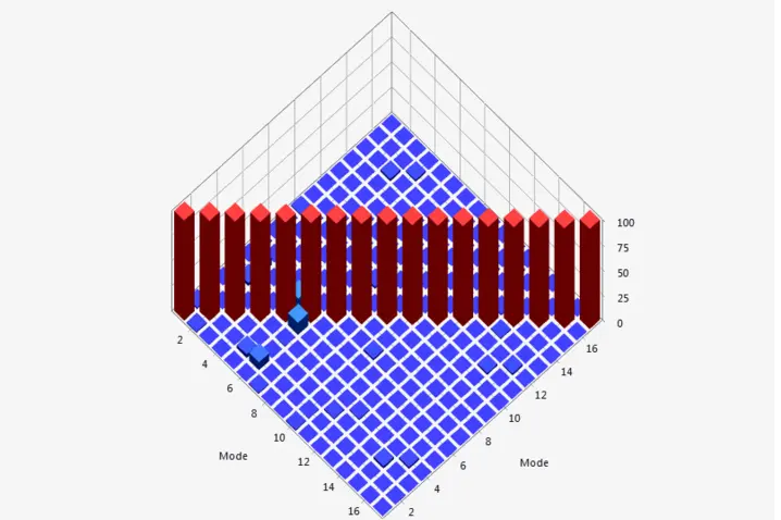 本次试验的评估频率高达10kHz。试验结果表明,我们完全可以获取结构在高频下的复杂振型细节(如图4b所示)。由于是3D测量,系统获取的是三维振动数据。测试数据可导出为通用文件格式,并通过FEM工具进行模态参数提取。