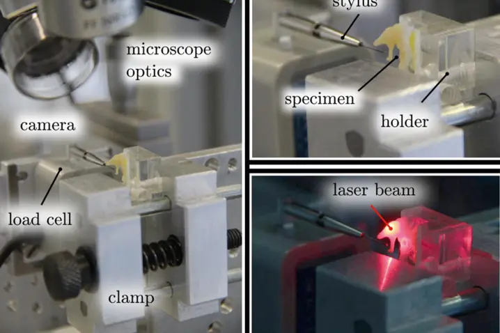 使用德国Polytec公司的三维扫描式激光测振仪,测量不同激励模式下的锤砧关节的相对运动,帮助研究人员更好地理解人类听骨链的力学功能和确定数学模型参数