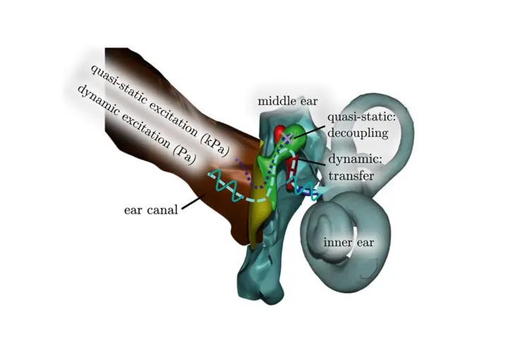 除了处理声致振动外,人的中耳还需要处理大量的准静态压力波动,比如由环境气压变化所引起的振动。这些压力变化可能比疼痛阈的声压大出很多倍。不光是周围环境压力的变化,其它一些日常事件如打喷嚏、车窗开启时的空气流动或姿势改变也可能导致准静态压力波动。