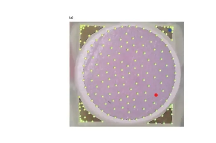 A grid (100 – 150 points) covering the tissue sample and the piezo was defined to establish the measurement points. It is important to note that measurements were taken of both the sample and the piezo.