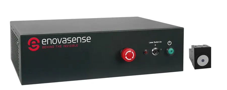 The complete measurement system essentially consists of two units (see image above): the main device with laser and evaluation electronics, and the lightweight, compact sensor head. The small dimensions of the sensor head (75 × 32 × 41 mm) and its weight of 150 g allow measurements in previously hard-to-reach locations. Mounting on a robotic arm is easily possible. The sensor head is connected to the main device via a cable containing both electrical lines and an optical fiber.