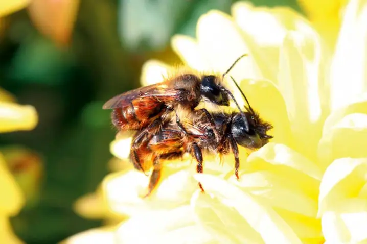 红毛蜜蜂是一种广泛分布在中欧和北欧的独居蜂。在求偶前期,雄蜂以拥抱姿势趴在雌蜂背上,并采取一系列行为来说服雌蜂同意交配:如振动胸腔、与雌蜂进行身体摩擦、反复伸出触角覆于雌蜂触角之上、将前腿放在雌蜂的复眼上等。在这过程中,雌蜂可能会将雄蜂从身上甩下来以示拒绝,但雌蜂到底是根据雄蜂的哪种行为来选择配偶,我们仍不得而知。