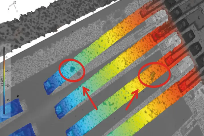 Im Folgenden beschreiben wir, wie sowohl das thermische Schwingverhalten als auch die Oberflächentopografie einer MEMS-Multi-Cantilever-Struktur mithilfe eines MSA Micro System Analyzers von Polytec charakterisiert wird (Bild 1). Der Micro System Analyzer vereint gleich drei leistungsfähige Messtechniken in einem Instrument: Laser-Doppler-Vibrometrie zur Out-of-Plane-Schwingungsmessung, stroboskopische Videomikroskopie zur In-Plane-Analyse und Weißlicht-Interferometrie zur Messung der Oberflächentopographie (Bild 2).