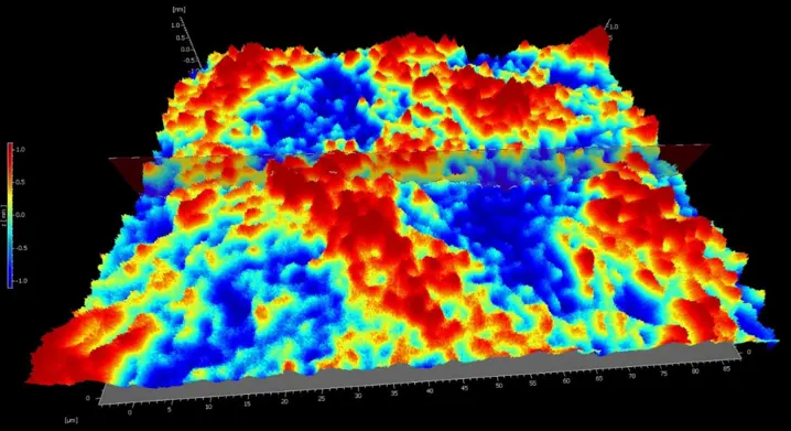 CSI can effectively measure surface roughness on both smooth and rough textures due to its vertical resolution, which can reach the sub-nanometer scale. On smooth surfaces, CSI provides detailed height information, detecting even the smallest variations in texture. It can also measure rough surfaces with high accuracy, as the technique can handle large variations in height without losing resolution and allowing an operator to access a large spatial frequency bandwidth of data, especially when supported by image stitching, the result is numerical data with good stability, ideal for the control and monitoring of the most subtle changes of a surface, plus, the visual pleasing imagery that has clarity and integrity, ideal for being used as a helpful failure analysis tool.