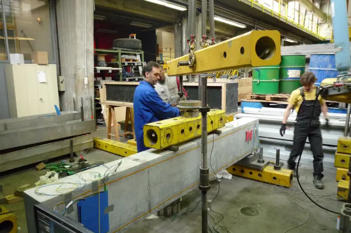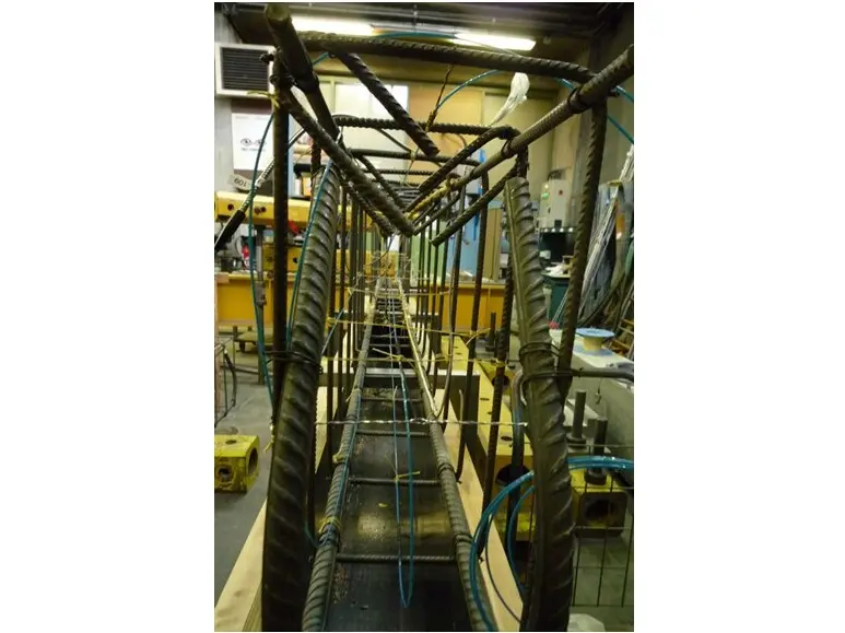 A research project was carried out by Electricité de France EDF to investigate the load bearing capacity of different structural elements in which a fiber-optic cable was integrated into a reinforced concrete beam alongside a conventional strain gauge (Figure 5 and Figure 6). The subsequent load test was taken to the non-elastic regionwhich lead to localized cracks appearing in the structure.
