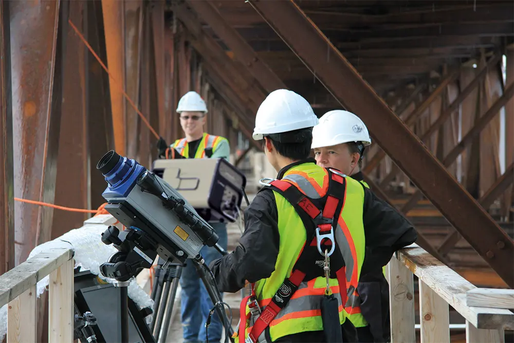 The integration of the vibrometers also makes it possible to realize automation solutions that require other measured variables in addition to vibration data. Researchers at KAIST (Korea Advanced Institute of Science and Technology), for example, combine a PSV scanning vibrometer with a scanning distance meter to expand the database for condition monitoring on bridges (Fig. 3).