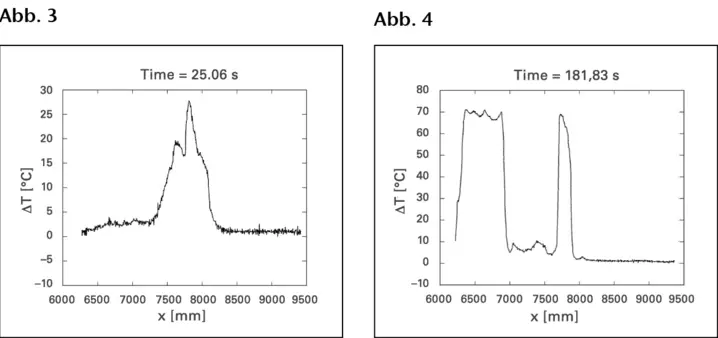 Shift of the temperature maximum with varying heating pressure (left: 3 bar, right: 5 bar)