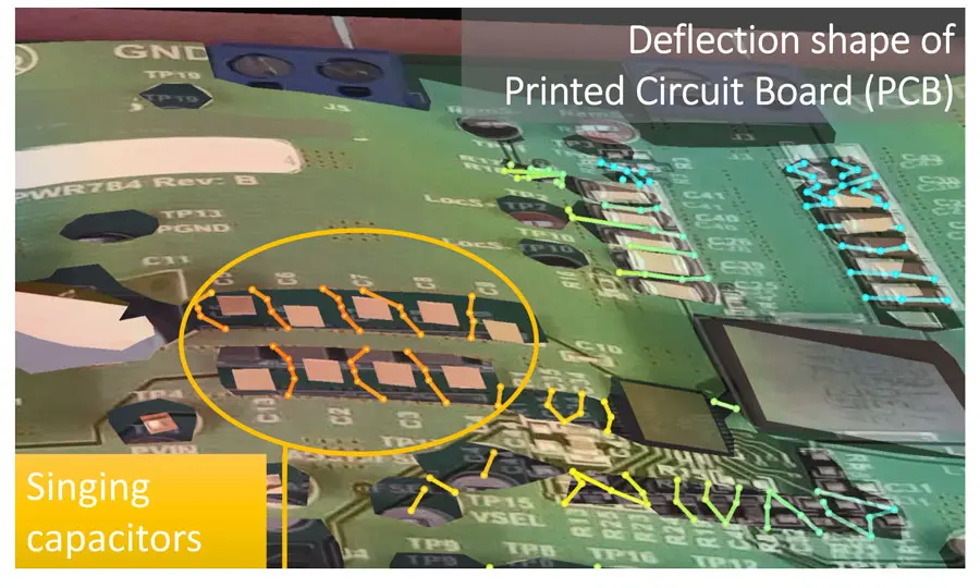 How can this phenomenon of a singing capacitor be characterized? How can the design engineer choose the right capacitor for a specific application and adjust the board layout to avoid a singing capacitor situation? Conventional microphones measure sound pressure level (SPL), however, they lack spatial resolution and are therefore incapable of identifying the culprit (i.e. the capacitor that is causing the PCB to sing). The vibration amplitudes of singing capacitors are very small. Even sub-nanometer displacements cause the PCB to vibrate at sufficiently high levels to affect the audio experience of the consumer.