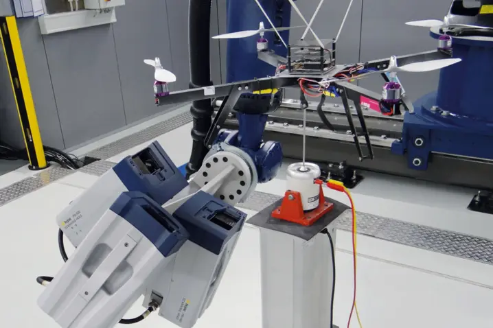 Vibrometers make modal testing possible on the entire drone structure as well as on a component level, no matter how small. More so, it is key to understanding the dynamic interaction between the individual components with each other. Wind and air turbulences are external excitation forces and influence the vibration forces exerted by the propellers and motors. If uncontrolled, critical resonances can easily be excited leading to excessive vibration levels, fatigue, and breakage.